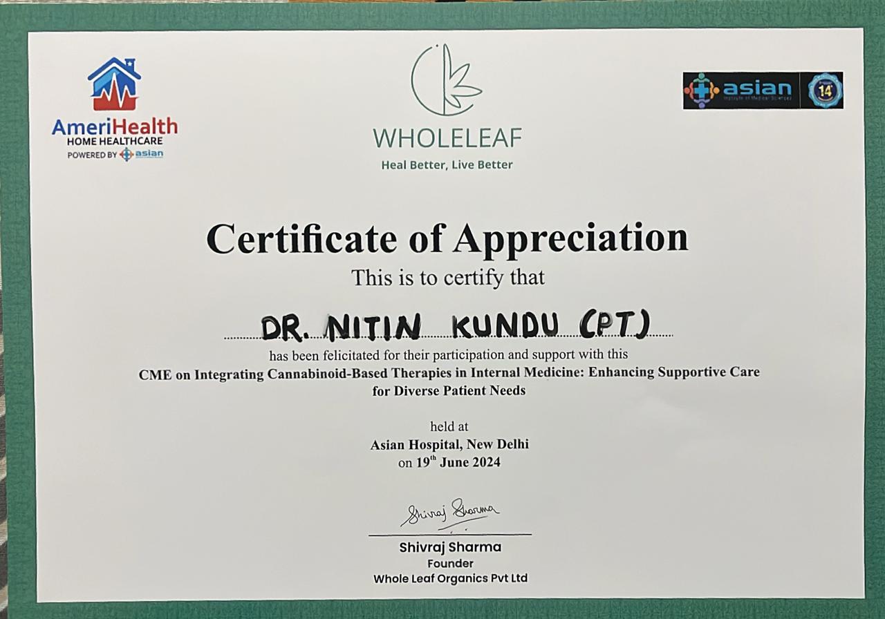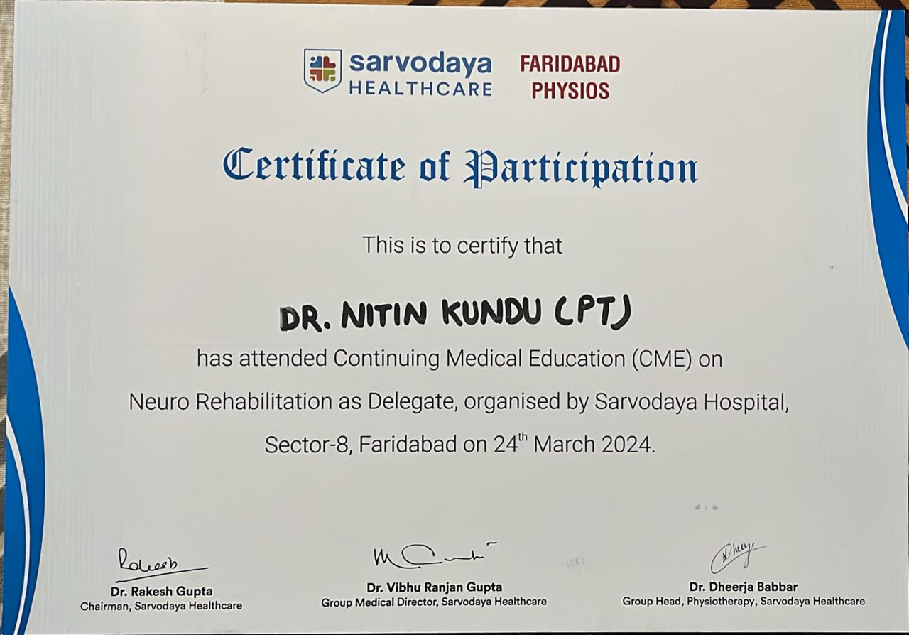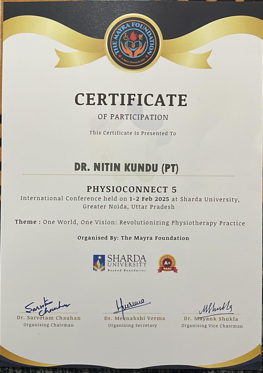 Dr. Nitin Kundu (P.T), BPT, MPT (Neurology), is a highly skilled and experienced Consultant Physiotherapist at the Asian Institute of Medical Sciences, dedicated to helping patients regain strength, mobility, and independence. With a deep understanding of Neurological Rehabilitation and Neuro Physiotherapy care, Dr. Kundu provides comprehensive rehabilitation for conditions such as stroke, Parkinson’s disease, spinal cord injuries, traumatic brain injury, Multiple Sclerosis, and Neuropathy. His patient-focused approach emphasizes recovery, confidence, and long-term well-being, helping individuals lead more active and fulfilling lives.